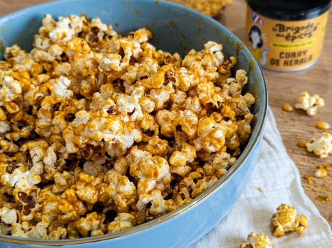 1. Faites fondre les 20g de beurre dans une grande casserole. Déposer les grains de maïs, couvrir et laissez les grains éclater. Mettre de côté.