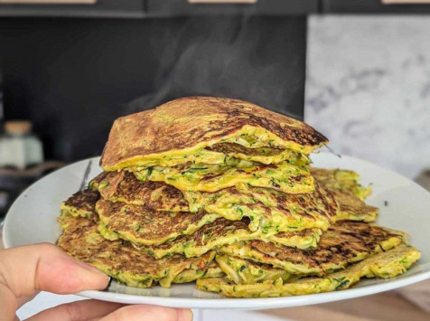 4. Faites chauffer un peu d’huile d’olive dans une poêle. Quand la poêle est bien chaude, y disposer une grosse cuillère à soupe de préparation. Aplatir pour faire une galette.