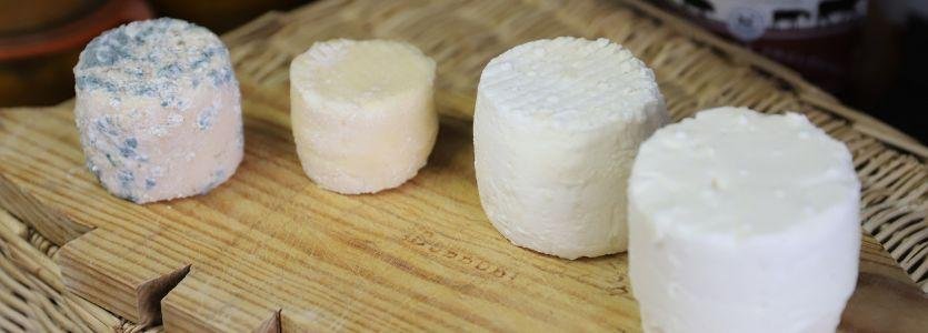 • Chèvres avec transformation fromagère à la ferme, les chèvres pâturent et les fromages sèchent en cages à l'extérieur pour des fromages fermiers authentiques, fabriqués en petite production.
