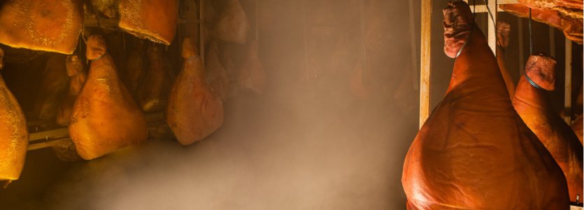 Elle est installée dans des locaux construits dans les années 80 et spécialement conçus pour la fabrication artisanale de jambons fumés.