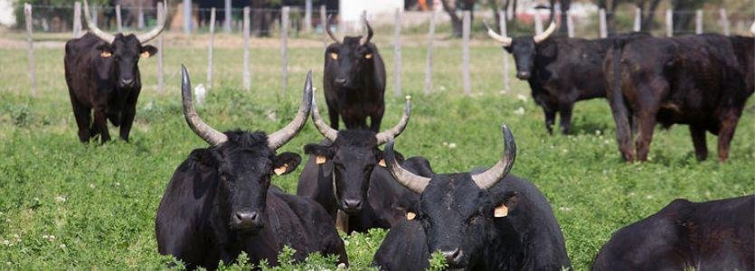 Le cheptel bovin compte environ 180 bêtes et pâturent près de 450 ha . Jamais véritablement domestiqué, le taureau Camargue conserve de nombreux caractères d’animal sauvage car il jouit encore, du moins sur ses pâturages, d’une liberté totale toute l’année, sans jamais connaître l’étable.