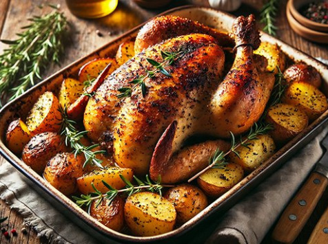 Poulet rôti à la sarriette et aux pommes de terre fondantes