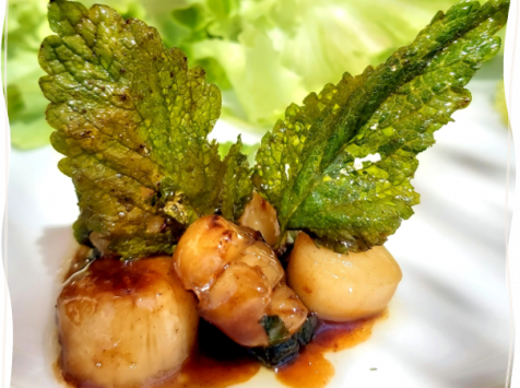 Pour 4 personnes : Une vingtaine de noix de pétoncle – 25cl de sirop de mélisse – Une noix de beurre